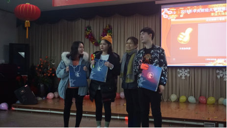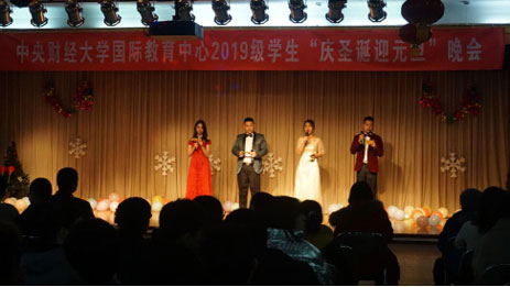 发布时间:01-29 来源:中央财经大学国际教育中心12月24日下午,中央财经大学国际教育中心2019级学生“庆圣诞迎元旦”联欢会在学院南路校区工会教职工活动中心隆重举办。中央财经大学继续教育学院副院长陈士平,中央财经大学国际教育中心副主任吴靖教授和孟慧敏老师及各位老师们与同学们欢聚一堂,现场气氛欢快愉悦,掌声雷动。