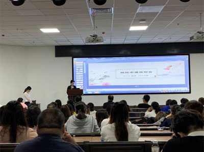 辅导员范鹏飞老师通报一年来学生在校学习生活的整体情况,鼓励同学们把握时机、乘势而上,为明年顺利出国留学做好最后冲刺;教研室主任杨萌老师向家长介绍了国际项目教学安排和课程设置;后期留学服务负责人张沫老师详细介绍国外大学申请及签证办理具体程序和材料准备要求,认真解答了各位家长关于学生出国手续办理等方面问题;中国建设银行莲湖路支行工作人员也应邀参会,为学生后期办理留学签证提供资金保障服务。